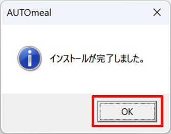 下のダイアログが出たらインストールは完了です。[OK] をクリックして閉じます。