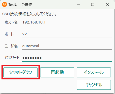 次回以降、Raspberry Pi 起動時に TestUnitFW が起動し、TestRunner からの接続が可能になります。