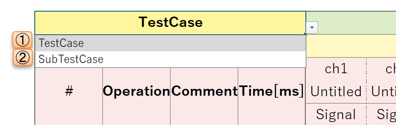 - ② : テストケーステーブル