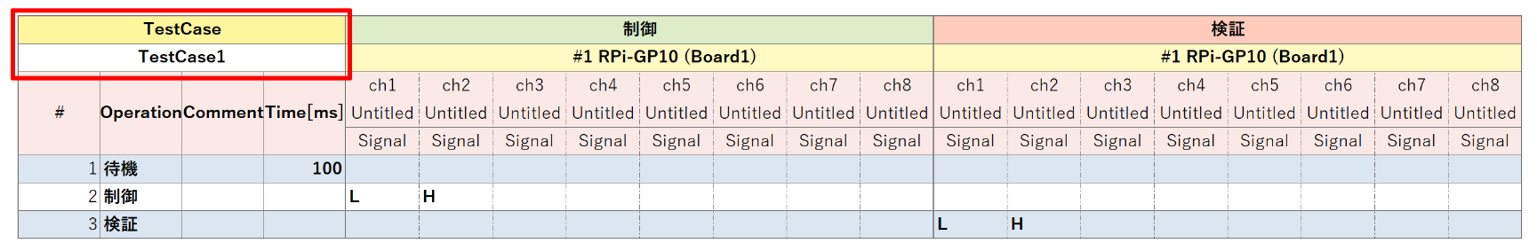 テストステップ 1 行内に書かれた制御パラメータは、TestUnit の状態によって並列的に出力される場合があります。必ず左から右の順番に出力されるわけではない点に注意してください。パラメータの出力順を制御したい場合、テストステップを複数に分ける必要があります。
