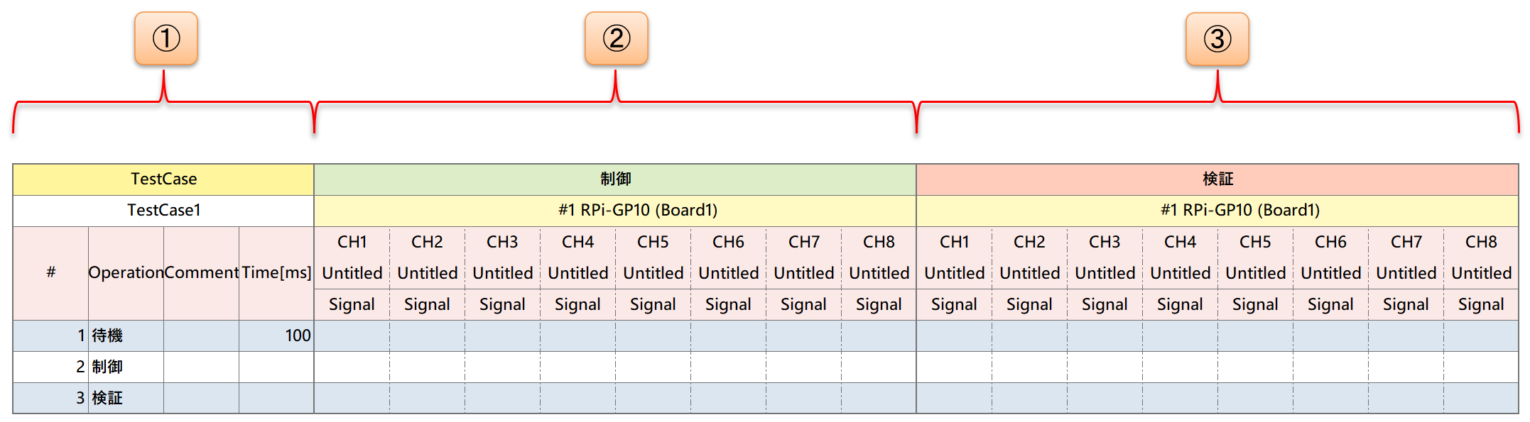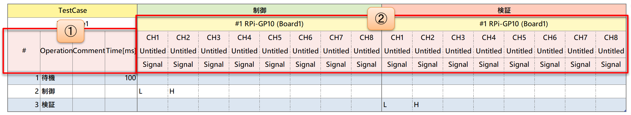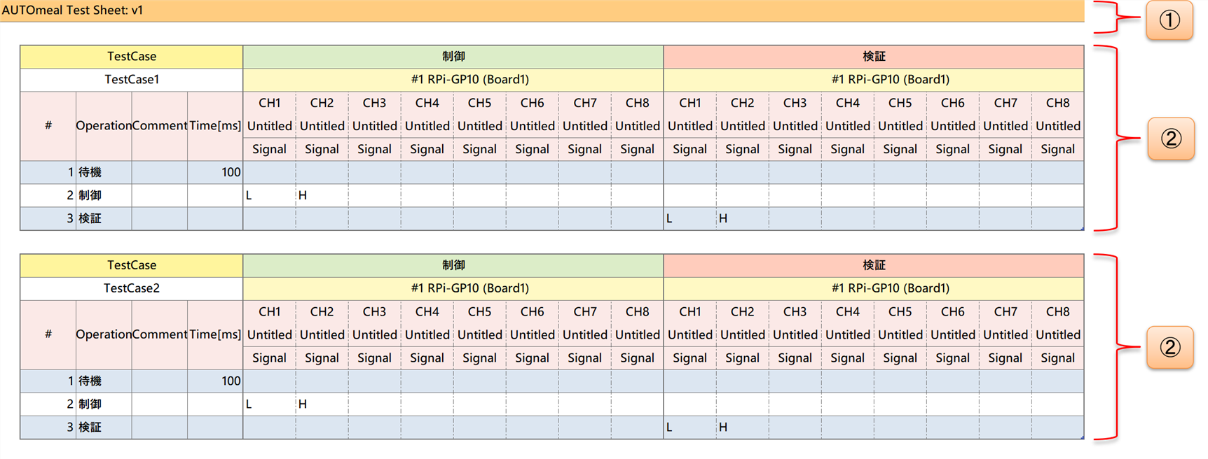 - ① : テストケース定義セクション