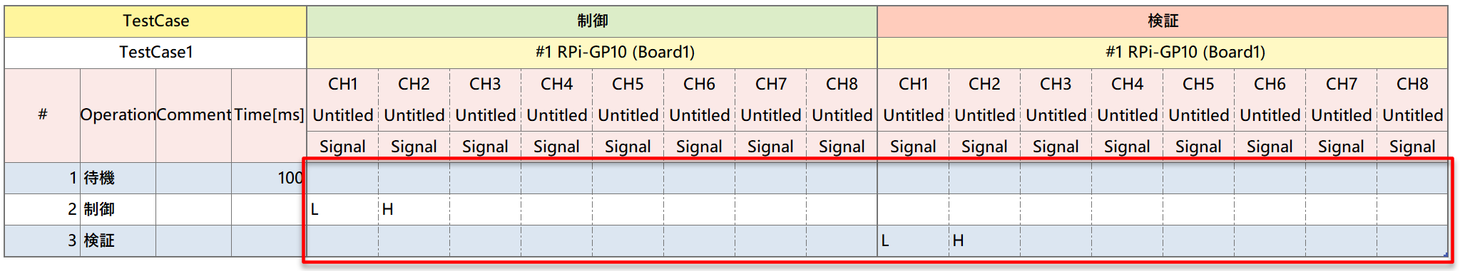 - 拡張 I/F ボードの検証を行うテストステップに必要な、各 CH の期待値を設定します。