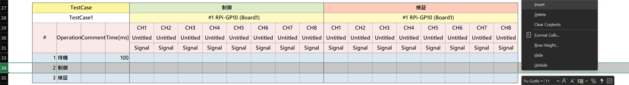 テストステップは行の挿入や削除でステップ数をコントロールできます。