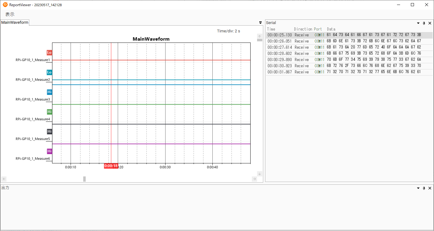 [出力] ペインは ReportViewer の動作ログを表示します。 TestRunner で記録されたログが表示されるわけではありません。
