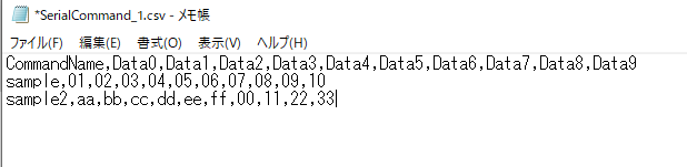 一行一列目はコマンド定義ファイルかどうかを識別するために使用します。変更しないでください。