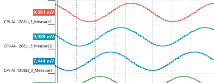 テスト実行中はリアルタイムに描画が更新され、取得から一定期間の波形を確認できます。 テスト終了後は制御・計測を行った全ての波形を確認できます。