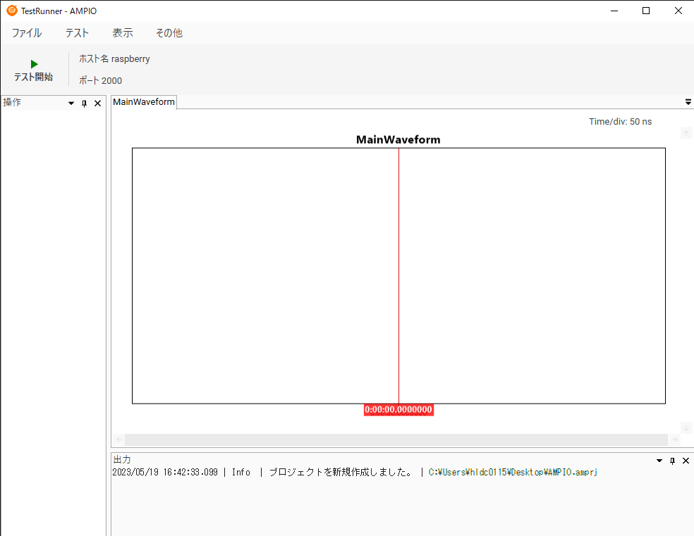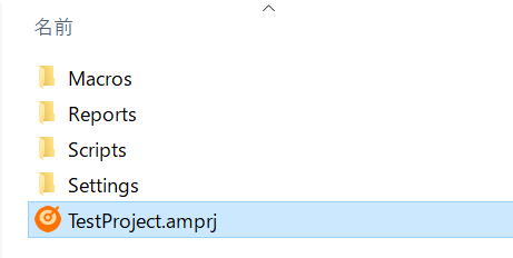 新規作成後はプロジェクトが読み込まれた状態になります。 指定したパスにプロジェクトファイル (.amprj) および関連ファイルが作成されていることを確認してください。