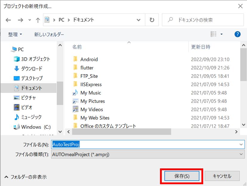 [プロジェクトの新規作成]ダイアログが表示されます。 任意の名前を付けてプロジェクトファイルが作成します。