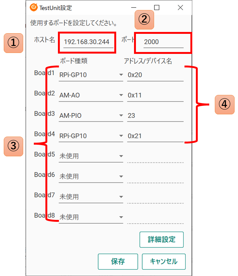 すべてのボードが”未使用”の場合は TestUnit と接続を行いません。