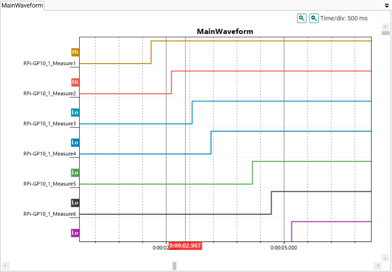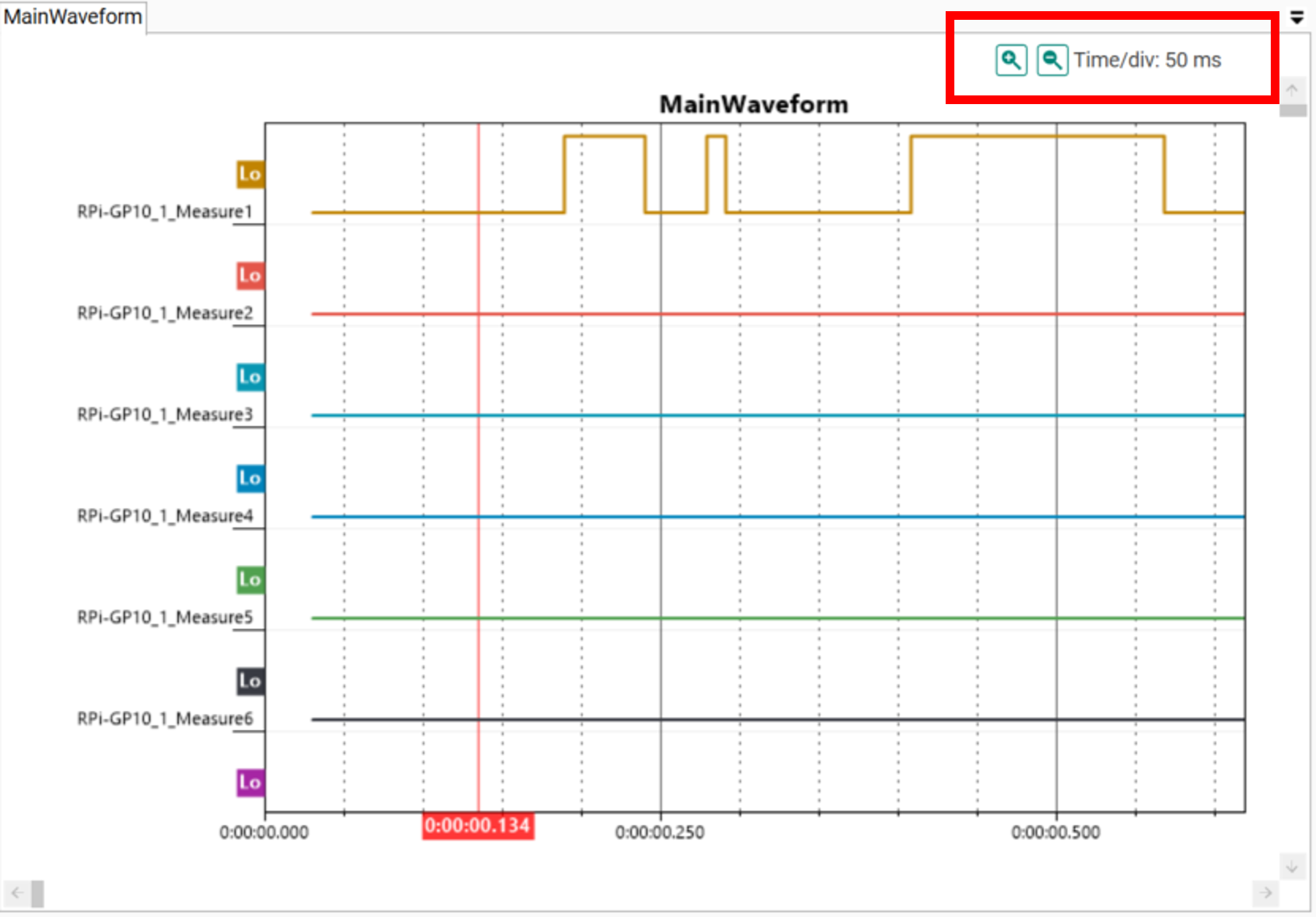 テスト終了後は [MainWaveform] でテスト開始 ~ 終了までに制御・計測を行った波形すべてを確認できます。