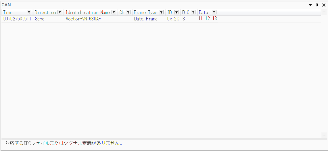 DBC ファイルが設定されていない場合や、ID に対応するシグナルが存在しない場合はリストは表示されません。
