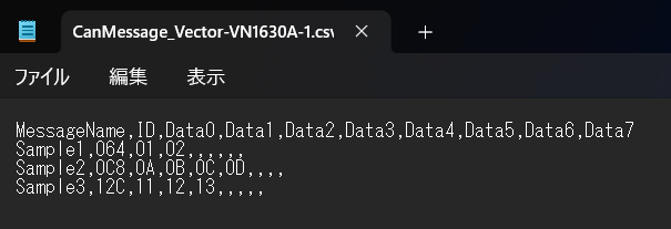 メッセージ定義ファイルは <プロジェクトルート>\Settings\CanMessage_X.csv (X は CAN 設定の識別名) に保存されます。