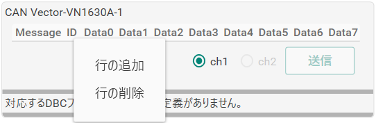 DBC ファイルが設定されていない場合や、[ID] に対応するシグナルが存在しない場合はリストは表示されません。