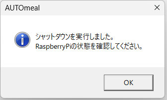[シャットダウン] をクリックし、Raspberry Pi をシャットダウンします。