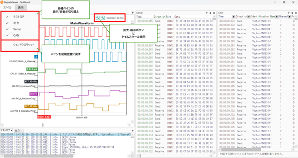 [ReportViewer] から確認できるほか、該当の zip ファイルを直接解凍し、TestLog.log をテキストエディタ等で開くことで確認できます。