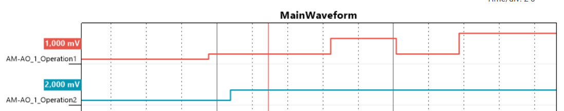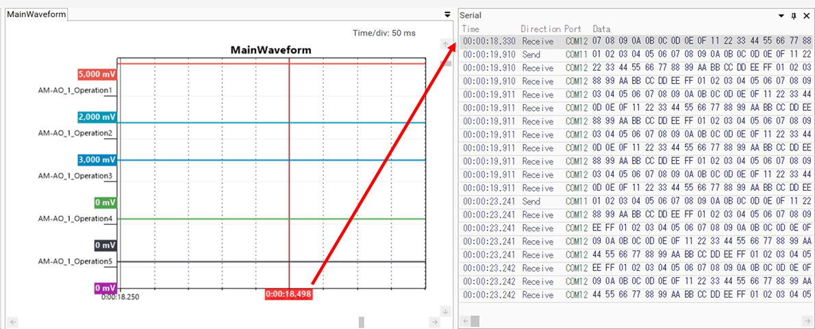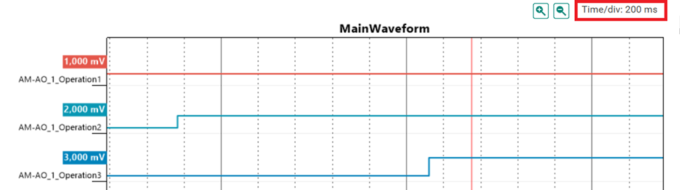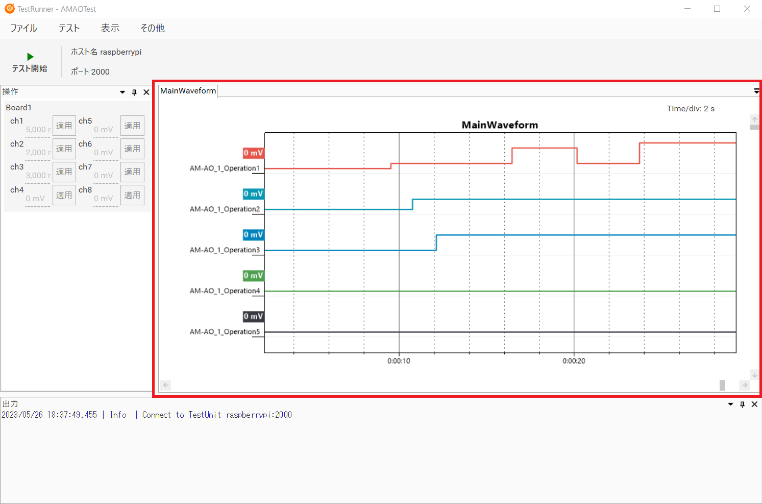 ここでは TestRunner アプリケーションの GUI 上で計測結果を確認します。 計測した値は MainWaveform 上に波形として表示されます。