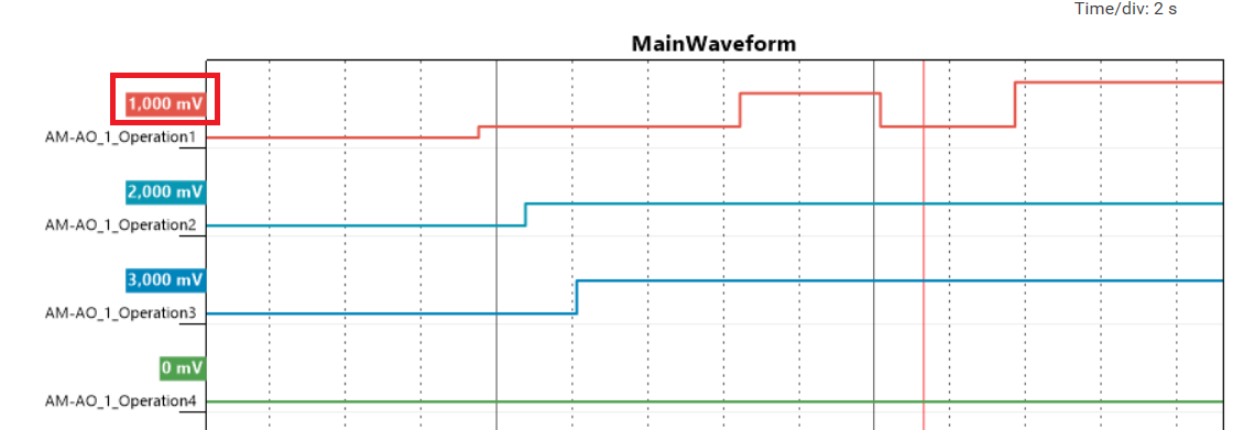 波形だけでなく、左側に表示される現在値ラベルからも電圧の状態が確認可能です。