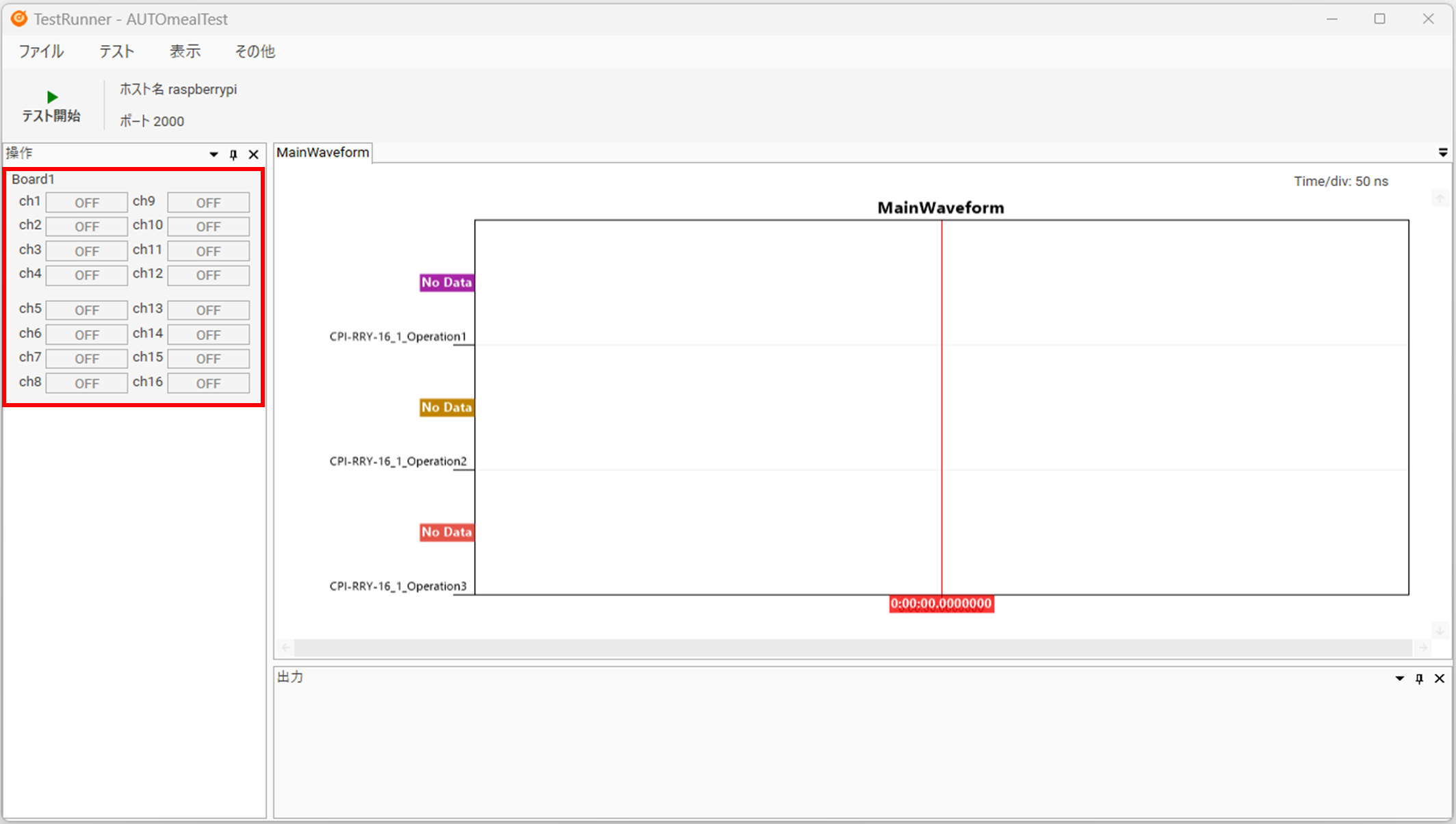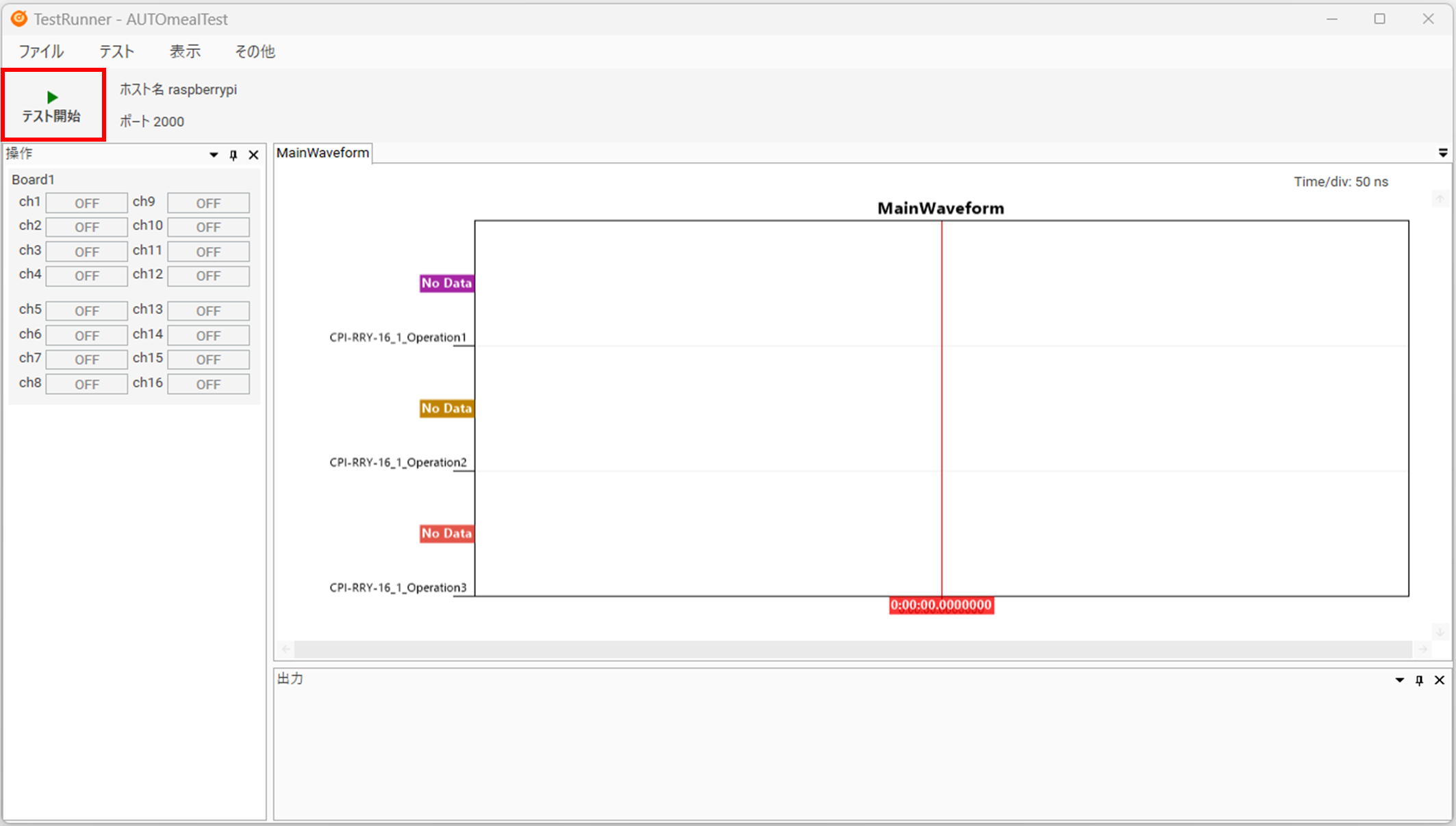 テスト実行中に何らかのエラーが発生した場合は、強制的にテストを終了します。 出力状態もエラー発生直前の状態が維持されることに留意してください。