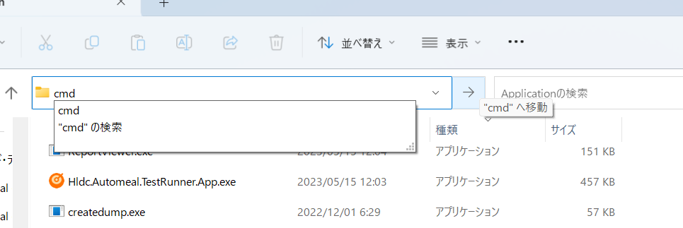 2. アドレスバーに [cmd] と入力し、Enter を押してコマンドプロンプトを立ち上げます。